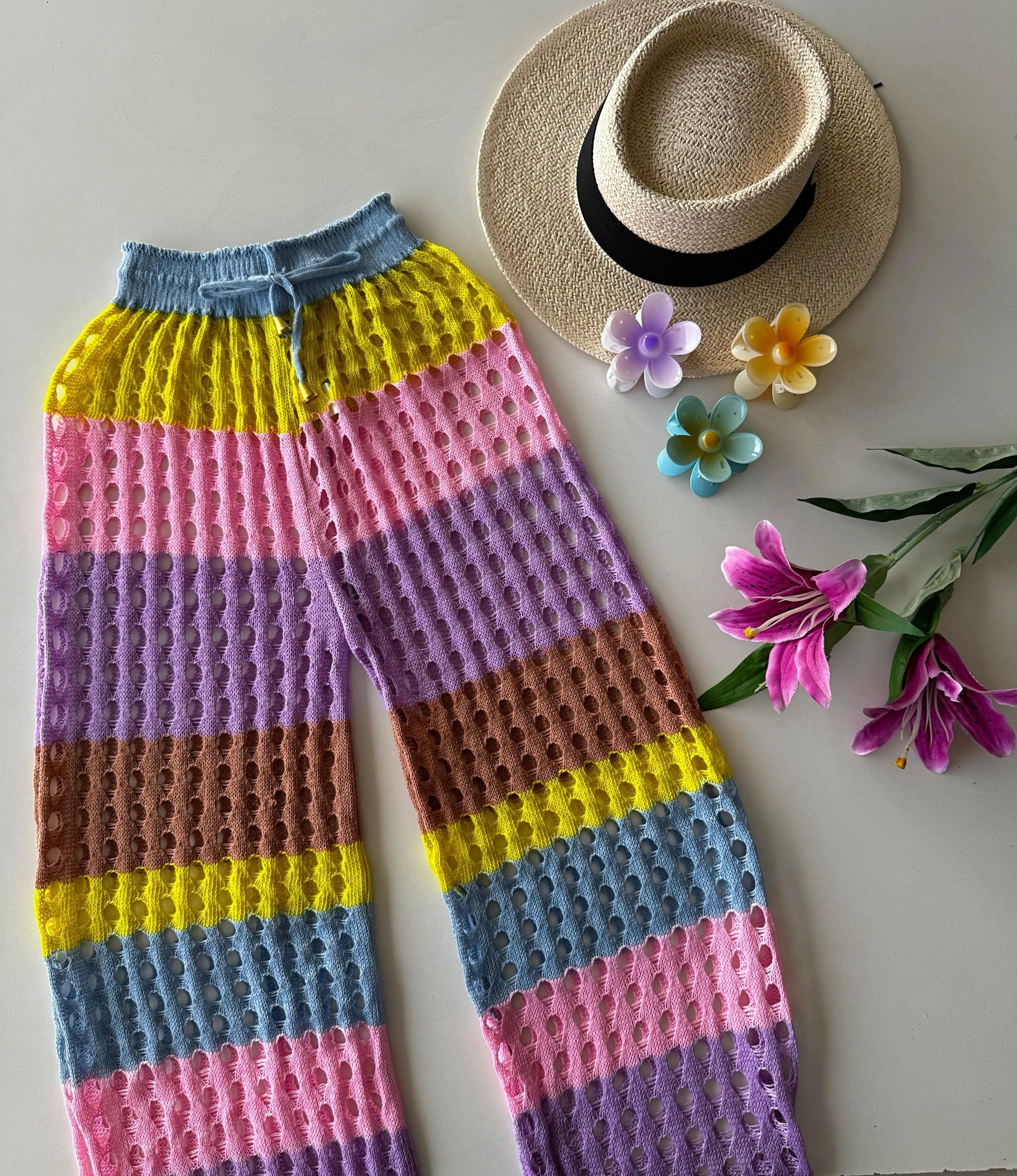 Confeccionado en tejido calado tipo tricot, con colores vibrantes que realzan el bronceado.